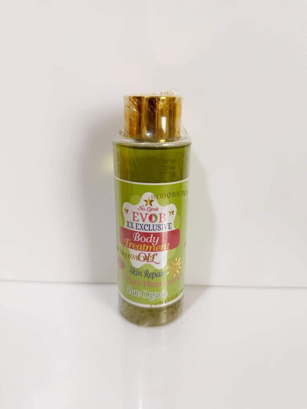 No Limit Evob XX Exclusive Body Treatment Oil 350ml Clears dark spots and skin irregularities Releases natural tone and Radiance Mild whitening and non Darkening Prevents the appearance of stretch marks and green veins Removes and Prevents white rice dots (patches) on the skin Maintains skin Elasticity Moisturizes the skin